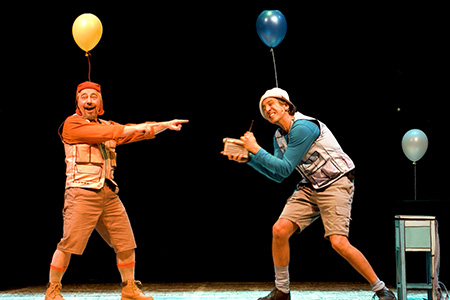 Due uomini e la loro giornata di pesca in un paese dove si vive con un palloncino in testa, perché è lì che risiedono le emozioni. Piccole manie, piccoli gesti, piccoli litigi e piccole incomprensioni per riuscire a pescare un piccolo pesce che farà scoprire loro l’emozione più grande, l’amicizia, raccontata con l’essenzialità di una striscia disegnata a colori. Uno spettacolo semplice e “leggero come i palloncini” per trattare il tema dell’identificazione e del riconoscimento delle emozioni, utilizzando un linguaggio che appartiene al mondo a colori dei più piccoli..